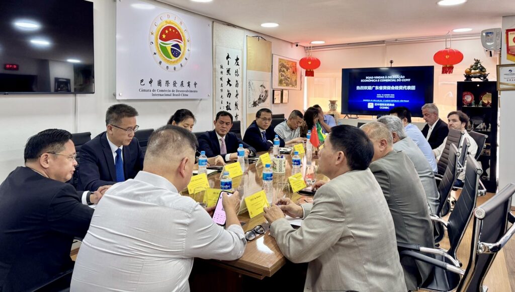 15 de janeiro de 2026, São Paulo – A sede da Câmara de Comércio e Desenvolvimento Internacional Brasil-China (CCDIBC) foi palco de entusiasmo e dinamismo hoje. O secretário do Grupo de Liderança do Partido e presidente do Conselho para Promoção do Comércio Internacional da Província de Guangdong (CCPIT Guangdong), Chen Xiaofeng, liderou uma delegação econômica e comercial de Guangdong, acompanhada por representantes da Câmara de Comércio de Guangdong no Brasil e de várias empresas líderes estaduais de Guangdong, em uma visita de inspeção profunda e pesquisa estratégica à nossa Câmara. Foi um aperto de mãos transoceânico e um diálogo profundo voltado para o futuro.