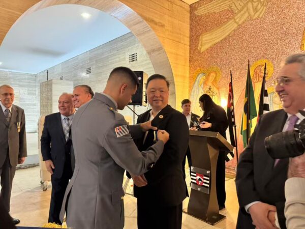 Presidente e Vice-presidente da Câmara de Desenvolvimento Internacional Brasil-China, Fabio Hu e Edenilson, são agraciados com a “Medalha Coronel Azaléias” do Estado de São Paulo