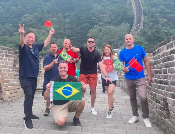 A delegação subiu à Grande Muralha para se maravilhar com sua grandeza e tirou fotos de grupo para registro do momento.