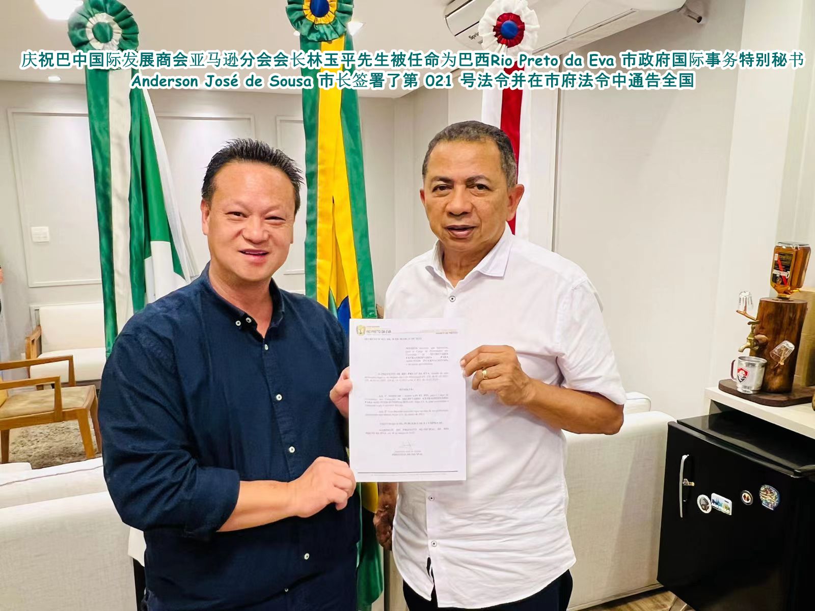 Na última sexta-feira (18/03/2022), em Rio Preto da Eva,  o prefeito Anderson José de Sousa assinou o Decreto nº 021, que nomeia Sr. Lin Yuping como Secretário Especial para Assuntos Internacionais, e notificou todo o país nesse decreto municipal.
