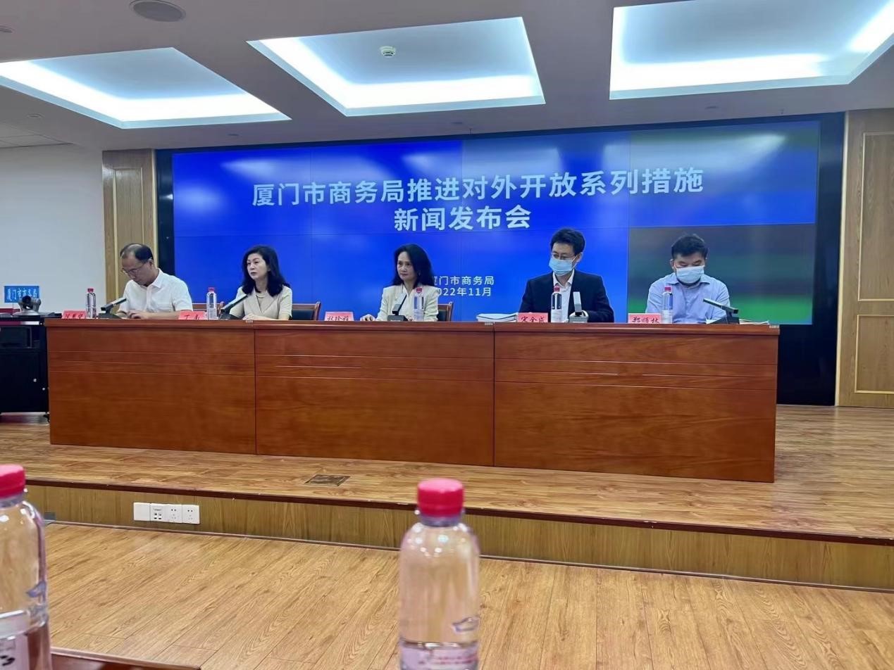 Em 15 de novembro, a Secretaria de Comércio Municipal de Xiamen realizou uma coletiva de imprensa, sobre “A série de medidas para promover a abertura ao mundo da Secretaria de Comércio do Municipal de Xiamen”, na qual a Lin Zhenya, Secretária Adjunta municipal de Comércio de Xiamen, apresentou os três aspectos dos esforços relevantes da Secretaria de Comércio para promover a abertura ao mundo, desde a construção de empresas internacionais de primeira classe, promoção de marcas nacionais próprias e otimização e atualização das principais empresas de comércio exterior.