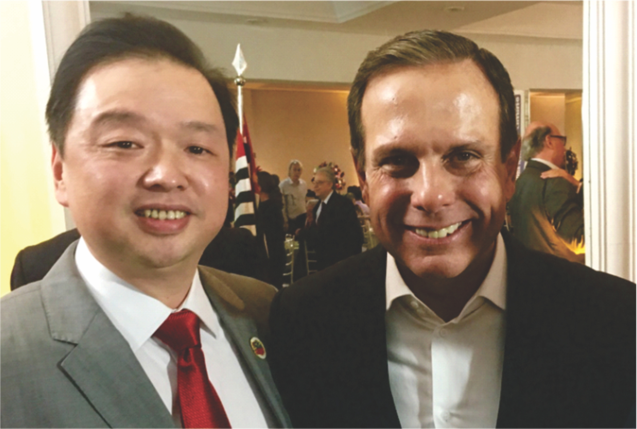 Após a premiação, o presidente Fábio Hu com a sua gratidão, disposto a fazer parceria em diante com a prefeitura municipal nos projetos dos produtos de iluminação verde e promoção dos projetos de poupança de energia. Após a reunião, o presidente Fábio Hu, o atual Governador João Doria e outras autoridades posam para fotos.